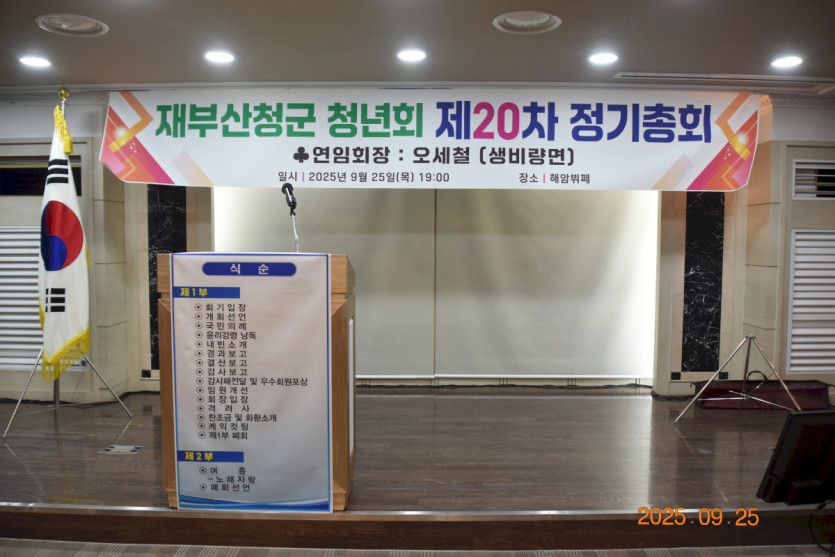 재부 산청군 청년회 2025년 09월 제20차 정기총회 및 회장 이임식 -2025,06,25 -해암 -鄭- 페이지 정보 작성자 정기조 쪽지보내기 메일보내기 자기소개 아이디로 검색 전체게시물 쪽지보내기 메일보내기 자기소개 아이디로 검색 전체게시물 (211.♡.224.172) 댓글 0건 조회 80회 작성일 25-10-04 13:16 본문 재부 산청군 청년회 2025년 09월 제20차 정기총회 및 회장 이임식 -2025,06,25 -해암 -鄭- ==================================== 재부 산청군 향우회 email: bssancheong@naver.com TEL: 051) 243-2333 / Fax 051-242-3393 49234 부산광역시 서구 구덕로 297 (서대신동2가) 4층 ==================================== SNS공유 관련링크 http://재부 산청군 청년회 2025년 09월 제20차 정기총회 및 회장 이임식 -2025,06,25 -해암 -鄭- 23회 연결 목록 댓글목록 댓글목록 등록된 댓글이 없습니다.